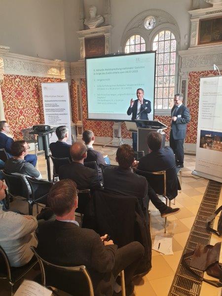 Sodann referierten die Rechtsanwälte Arnd Bühner und Tobias Jordan (beide Bühner & Partner Rechtsanwälte mbB) zum Anwendungsbereich der HOAI bei grenzüberschreitenden Sachverhalten und zur kontroversen Auslegung des EuGH-Urteils in der nationalen Rechtsprechung, die nur durch eine baldige Entscheidung des BGHs geklärt werden kann.