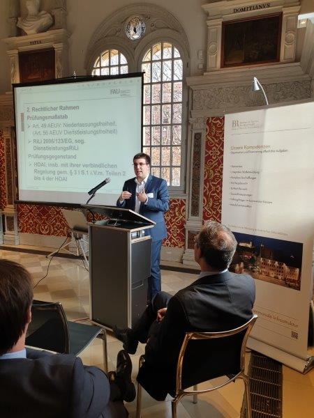 Im Anschluss analysierte Konrad Körner (Friedrich-Alexander-Universität Erlangen-Nürnberg) das EuGH-Urteil und stellte eine tragende Begründung, nämlich die besondere Hochpreisigkeit von Planerleistungen in Deutschland ohne signifikante Qualitätsunterschiede zu anderen Ländern, in Frage. Der EuGH hatte sich auf eine wenig aussagekräftige Statistik berufen.